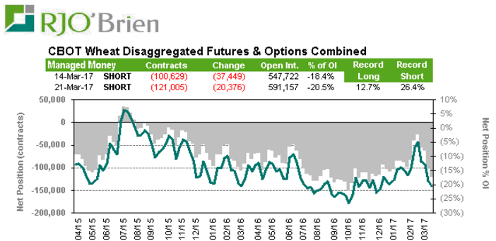 Blé Chicago : Rien à faire. Le bilan supply/demand est trop lourd pour les fonds qui maintiennent plus que jamais leur position de vente. Un contrat sur 5 est un spéculateur qui vend et cette position est significative que si jamais quelque chose se passait, on pourrait voir une variation de prix subite/rapide sur un mouvement haussier.