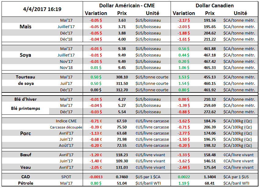 L'USDA a commencé a nous donné l'information sur l'état des cultures. Oui oui c'est bien le signe du printemps! Et aussi le BBQ. Et les playoffs du Canadiens! Pour l'instant les semis de maïs/soja n'ont pas suffisamment avancé nationalement (malgré le début bien amorcé au sud des USA) alors on surveille la qualité du blé d'hiver qui sort de dormance. Les conditions sèches des dernières semaine faisaient craindre une baisse de la qualité mais le retour de la pluie a su revigorer les cultures. On note une amélioration massive au Kansas, Oklahoma et Texas (les plus gros producteurs de blé d'hiver). L'USDA considère que 51% du blé est de bonne ou excellente condition par rapport à 59% l'an passé lors des records de rendements.