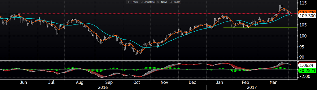 Le marché du bœuf a terminé la séance d’hier sur un ton négatif sous l’influence du prix de gros qui éprouve de la difficulté à maintenir les gains des derniers mois. Le CàT d’avril a baissé de 1.20 ¢/lb à 118.225 et l’échéance de juin a chuté de 1.40 ¢/lb à 109.30. Le contrat de juin a chuté en-dessous de la moyenne mobile 18 jours qui fournissait un certain support ces derniers jours, cela pourrait entrainer des ventes additionnelles. Le support technique du CàT de juin est à 108.10 ¢/lb, il ne serait donc pas surprenant de voir le prix reculer encore un peu pour tester ce niveau. Pour sa part, l’échéance du mois d’août a clôturé à la baisse de 1.275 ¢/lb à 105.525. Le marché à terme atteint leur plus bas niveau depuis 2-3 semaines.