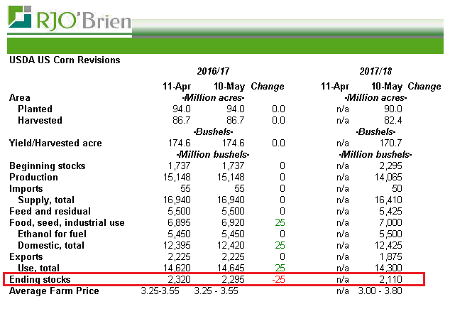 Le premier regard de l'USDA sur les inventaires américains 2017/18 et les bilans mondiaux a fourni quelques surprises, mais à la fin de la journée, peu de changements fondamentaux découlant des structures lourdes mises en place au cours des dernières années. L'estimation des cultures de blé d'hiver des États-Unis était plus faible que prévu, mais les stocks des États-Unis devraient encore rester historiquement importants et les inventaires mondiaux continuent leur ascension dans le territoire record.