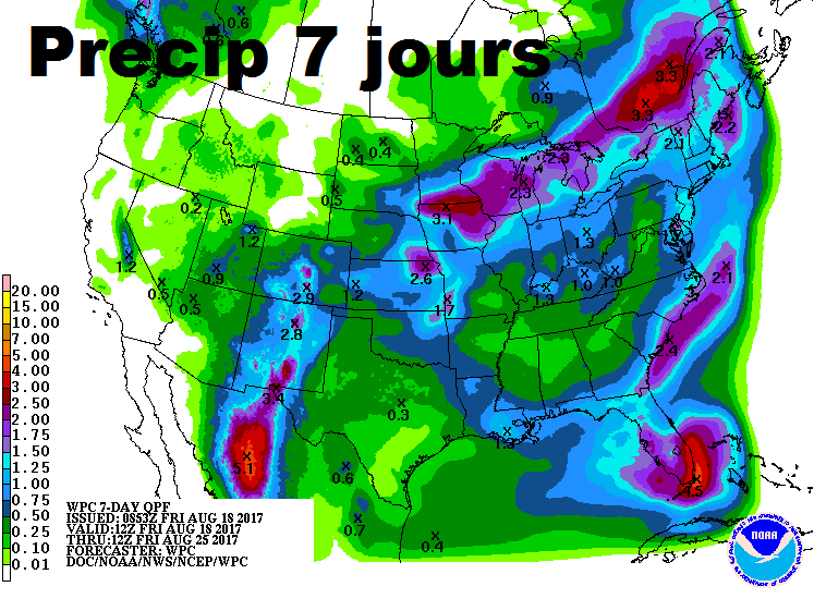 Court commentaire aujourd’hui – simple mise à jour. Les cartes météo sont plus bas, je ne vois rien de dangereux ; les pluies en Iowa seront bienvenues. On va suivre le Crop Tour la semaine prochaine. Bon weekend!