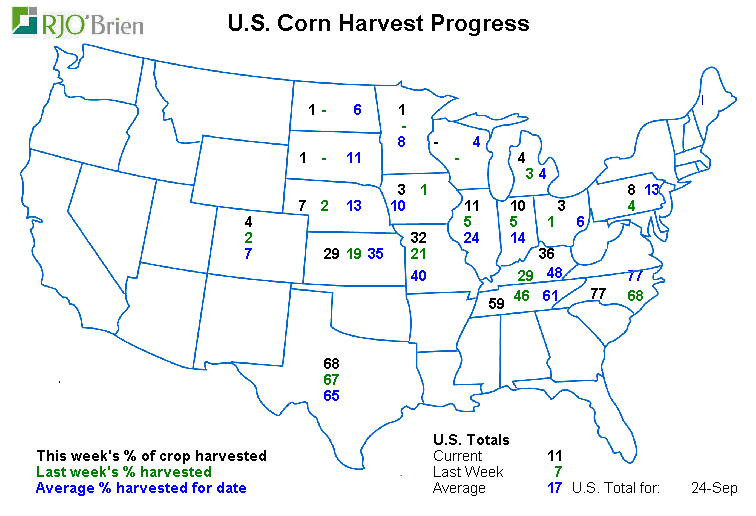 · Maïs : lent départ pour les récoltes aux USA 11% vs 17% moyenne