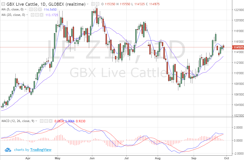 Je continu de surveiller de très près la relation de prix entre le contrat d’octobre (cash) et décembre qui est inhabituelle. Anormale en termes historiques, mais on comprend pourquoi compte tenu des nouveaux abattoirs. L’USDA hier a confirmé l’expansion du cheptel et de la production porcine aux USA, en hausse de 2.5% et en ligne avec les prévisions. La production pour le dernier trimestre de 2017 est en voie d’augmentation de 4 à 6% et sera non seulement très forte, mais un record. Même avec les nouveaux abattoirs, il semble que le contrat de décembre soit surévalué, ou très optimiste disons, par rapport à Octobre.