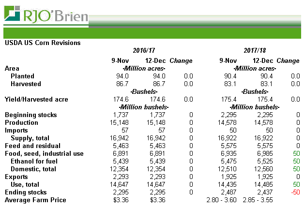 L’USDA n’a pas réellement changé la structure du marché cet après-midi. Sommes toutes les modifications du bilan offre-demande touchent uniquement le côté « demande » alors que le ministère publiera en janvier les résultats finaux des récoltes 2017-18 (rendement + surface).