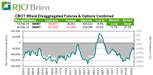 Blé feed (CBOT) : Continuellement le « mal-aimé » des investisseurs bullish. Malgré qu’ils aient couvert quasiment 100K contrat, le marché du blé d’hiver est encore short 70K contrats.