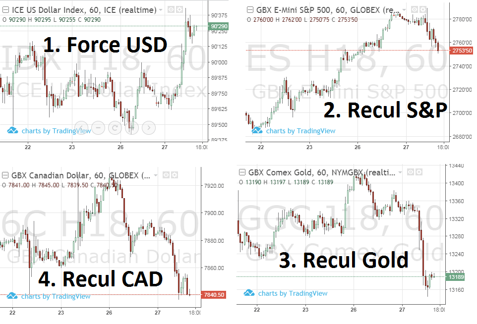 Le nouveau président de la Réserve Fédérale des USA, Jerome Powell, vient de faire ça première allocution officielle. Il remplace Janet Yellen. Comme prévu je dirais, il nous rappelle que les perspectives de l’économie américaine sont très bonnes. Il dresse un portrait de l’économie qui gagne en vigueur et qu’il a bien l’intention de poursuivre le travail amorcé afin de monter les taux d’intérêts. La Fed a haussé son taux directeur à trois reprises l'an dernier, et elle a déjà signalé qu'elle avait l'intention de le hausser trois nouvelles fois en 2018 (certains pensent même que c’est possible d’avoir une 4e… on verra). Sur les marchés financiers tout était cohérent; le discours est positif pour le dollar US, mais a fait chuter les indices boursiers et les cours de l’or. Le dollar canadien lui est en basse à 78.50 cents en route vers les support à 77.50.
