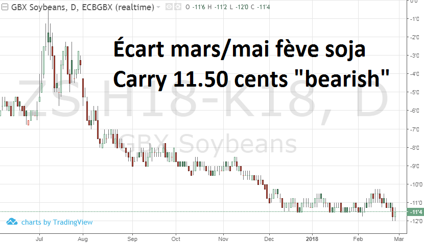 De mon côté je suis prudent car 1) les spread sont encore très bearish à court terme et 2) les bases dans le Midwest américain sont très molles. Donc autant les spread que les bases ne sont pas aussi volatile que le contrat à terme qui à jumpé de près d’une piasse le boisseau depuis un mois.