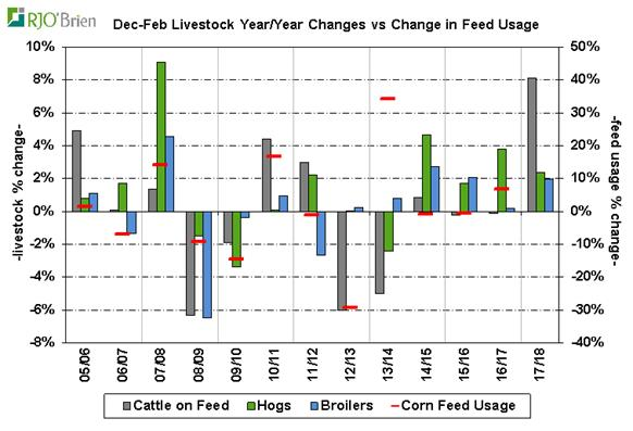 · Les estimés pour l’utilisation de Dec-Fev seront à un record de 3.845 milliard de boisseaux, versus 3.774 milliard l’an dernier.