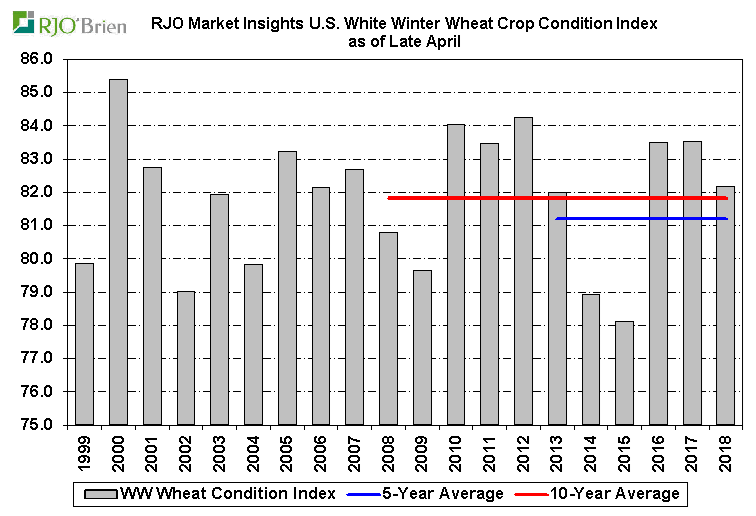- Blé d’hiver américain : 33% bon/excellent +2% vs la semaine dernière; 54% l’an dernier