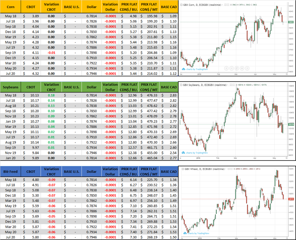 - Maïs américain : 62% de planté ; 39% la semaine dernière; 38% l’an dernier; 63% en moyenne