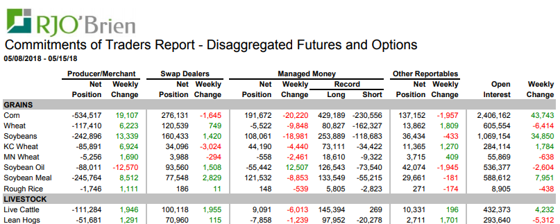 Spéculateurs: Tous des ventes de CàT cette semaine (sauf huile soja). Les fonds sont encore long (acheteur) mais is ont trimé leur exposition dans le marché.
