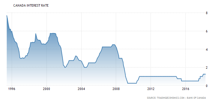 Pétrole qui s’écrase de 3$ le baril à New York fait pression sur le huard. Aussi cette semaine très peu sinon aucun progrès sur l’ALÉNA. Mercredi prochain le 30 mai la Banque du Canada fera l’annonce sur les taux d’intérêt et le marché s’attend au statu quo de 1.25% - pas de hausse tout de suite. Une hausse des taux ferait augmenter la valeur du dollar canadien. Le marché s’attend à des hausses de taux dans les prochains trimestres, mais rien d’anormal ici car les taux sont tout de même historiquement bas. Ça fait 10 ans qu’ils sont essentiellement à 1%. La grande question est plus de savoir à quel rythme la BduC haussera le taux directeur. Selon moi tant et aussi longtemps que les questions concernant le commerce (ALÉNA) notre banque centrale sera graduelle dans les taux et non agressive.