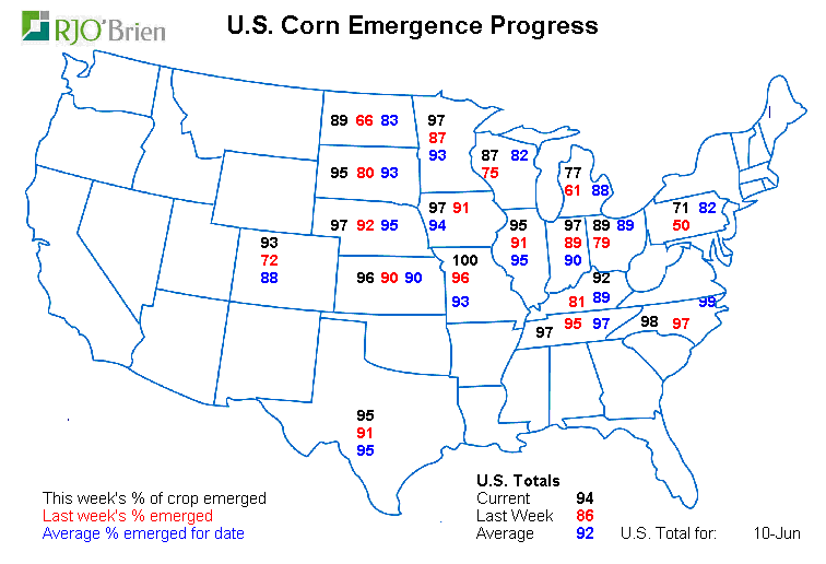 1) Qualité des récoltes très bonnes actuellement. Les semis ont commencés avec un peu de retard, mais la situation s’est redressée à la mi-mai et tout est rentré dans l’ordre assez rapidement. Depuis ce temps la météo coopère fortement et les conditions des récoltes sont une des meilleures depuis des années. La saison de croissance n’est pas finie mais ça part très bien.