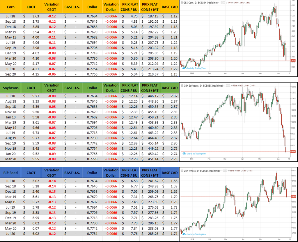 - Il est encore tôt dans l’été. Par exemple en 2010 les cours ne faisaient absolument rien d’excitant pendant l’hiver et le printemps; on transigeait aux alentours de 3.50 $bu sans émotions. Puis à partir de juillet la météo a changé, il a commencé à faire très chaud et plutôt sec. De 3.35$ à la fin juin on s’est rendu à 6 $bu rendu aux fêtes. Attentions, les inventaires et la demande était différente et le passé n’est pas garant du futur. Ceci étant dit, ce n’est pas fini tant que ce n’est pas fini.