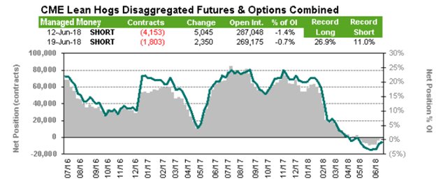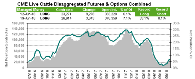 Vendredi, le rapport Cattle on Feed publiait un estimé de l’état actuel des parcs d’engraissement. Les placements et les inventaires se sont avérés supérieurs aux estimés des analystes ce qui a négativement affecté le marché hier. Premièrement, après deux mois de diminution par rapport à 2017, on s’attendait à une baisse des placements, mais ceux-ci se sont avérés être de retour en territoire positif, bien qu’il s’agisse du hausse très modeste (+0.2%). Les placements se sont avérés plus hauts que prévu pour les poids légers, ce qui aura pour effet d’augmenter l’offre à moyen terme. Deuxièmement, même si les mises en marché étaient au rendez-vous, en hausse de +5.4% versus 2017, les inventaires n’ont pas diminués pour autant. Des 11.55 millions de têtes en parc au 1er juin, on note que la majorité est en engraissement depuis plus de 3 mois. Comparativement à l’an dernier, il y a +16.1% plus de bœufs qui sont engraissement depuis plus de 90 jours alors qu’il y a -5.7% moins de bœuf en parc depuis moins de 90 jours. Il semble que le marché anticipe encore une abondance de l’offre à court terme au niveau élevé des inventaires de bœufs en engraissement depuis plus de 3 mois.