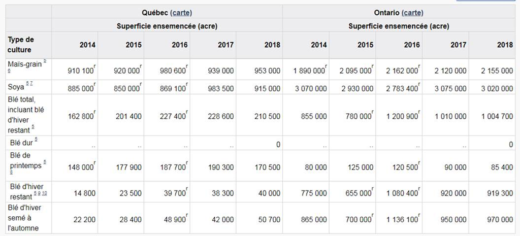Au Québec, les agriculteurs ont déclaré une hausse de 1,5 % par rapport à 2017, ayant ensemencé 953 000 acres en maïs-grain en 2018. La superficie ensemencée en maïs-grain au Manitoba a aussi augmenté de 4,4 % pour atteindre un sommet de 428 000 acres en 2018.