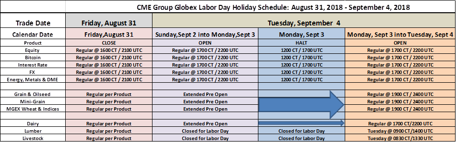 Hi, quick reminder for Labor Day schedule. Grains & livestock closed Monday – some other markets like currencies will trade only in the morning. Regular schedule Tuesday.