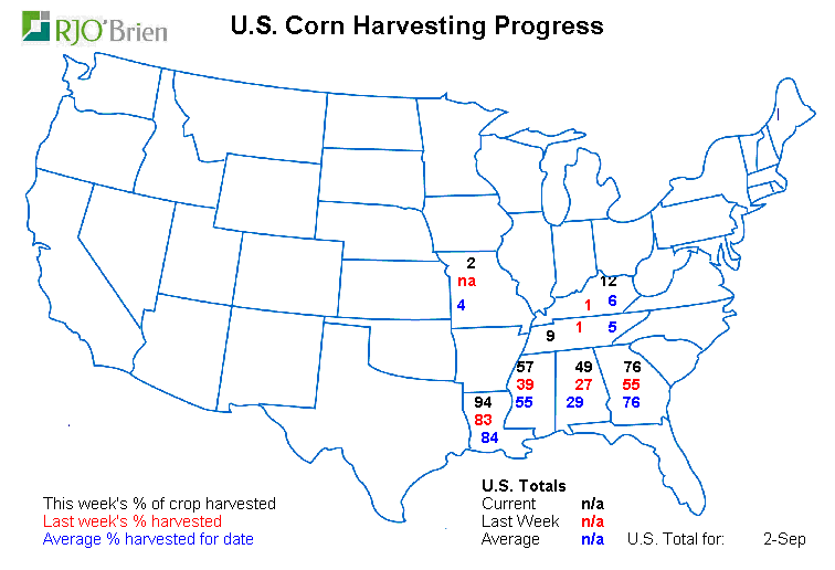 -Récolte US blé de printemps : 87% complété vs 89% attendu (fourchette de 86-92%), 77% semaine dernière, 87% l’an dernier, 75% moyenne