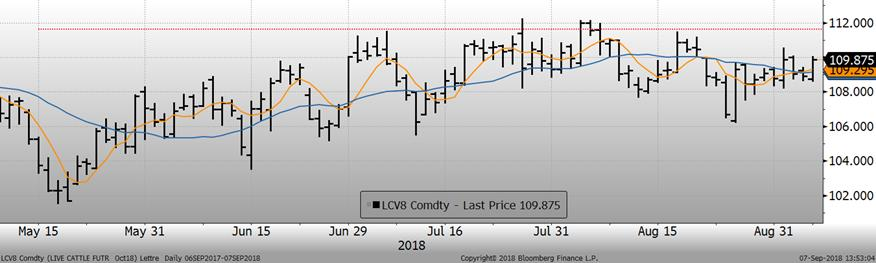 L’USDA estimait que les abattages étaient de 119 000 têtes jeudi ce qui amenait le total pour la semaine à 354 000 têtes, une baisse de 119 000 têtes sur la semaine passée, car il y a eu le congé férié de la fête du travail en début de semaine. Il s’agissait tout de même d’une baisse de -0.8% par rapport à l’an dernier (-3 000 têtes).