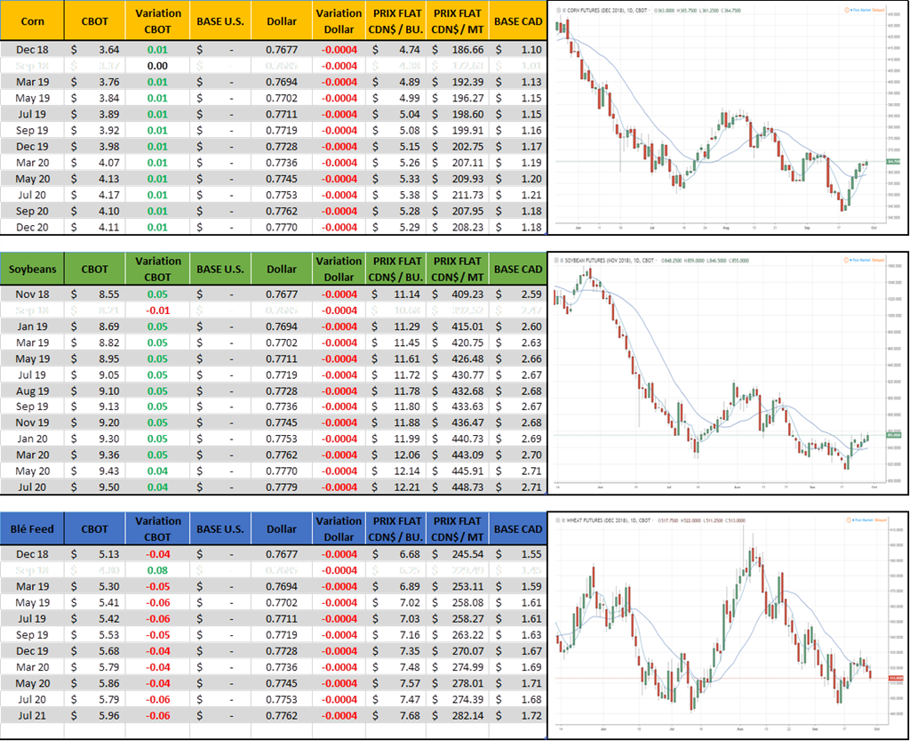 - Bonne ventes d’exportation maïs, blé et tourteau