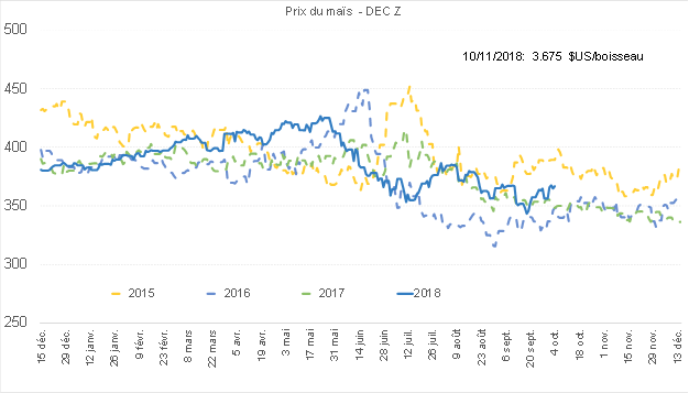 Prix du CàT de maïs sur décembre (nouvelle récolte)