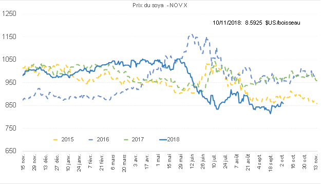 Prix du CàT de soya sur novembre (nouvelle récolte)