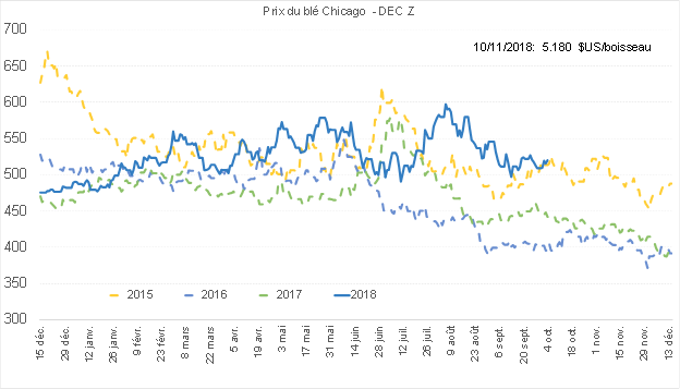 Prix du CàT de blé Chicago sur décembre (ancienne récolte)