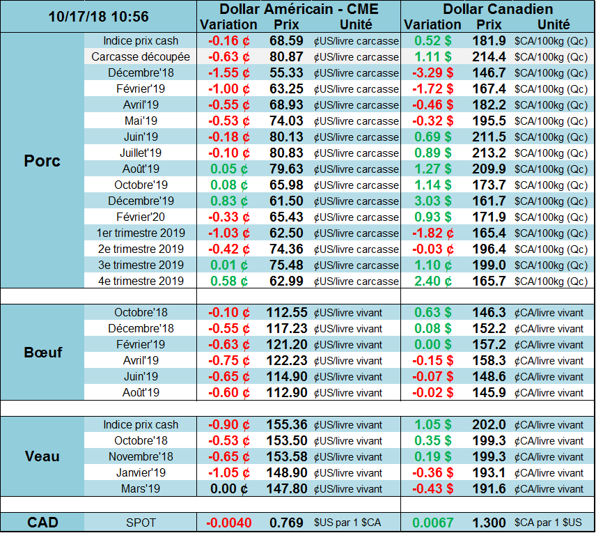 Source: CME Daily Livestock du 17 octobre 2018