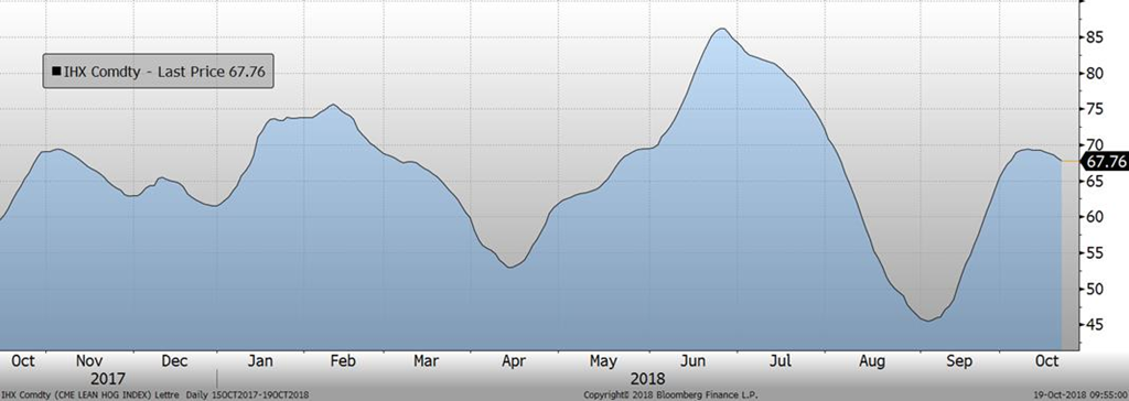 Selon l’agence d’information Reuters, la Peste Porcine Africaine aurait jusqu’à maintenant contaminé 41 fermes dans 27 villes à travers le pays. Afin de limiter la propagation de la maladie, les autorités chinoises auraient abattus 200,000 porcs soit 0.02% de la production annuelle du pays. À mon avis, ce qui sera le vrai test pour la Chine sera de contrôler la maladie lorsque les températures chuteront en janvier-février ce qui facilite la propagation de la maladie. À suivre!