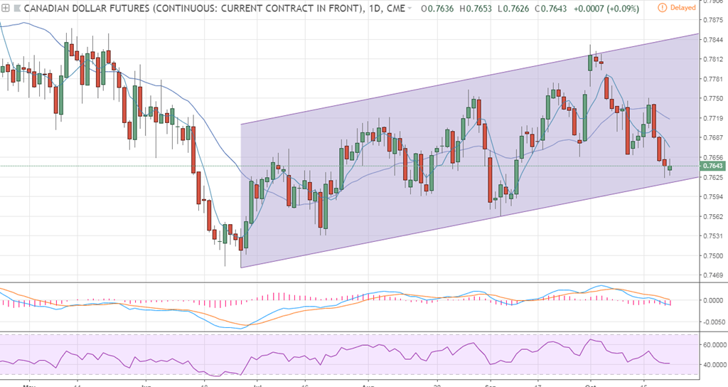 Le dollar canadien est sur une zone intéressante techniquement (graphe) à l'aube de la rencontre de la Banque du Canada ce mercredi ou on s'attend à une hausse des taux de 0.25% pour toucher 1.75%. Comme aux États Unis, on s'attend à ce que graduellement les politiques monétaires des banques centrales se resserent en augmentant les taux directeur.