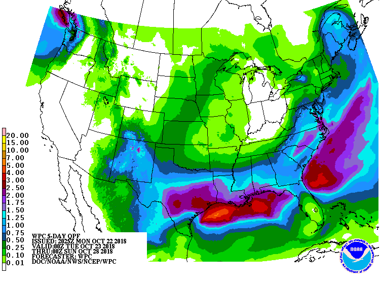 La météo est bonne pour les 5 prochains jours aux USA mise à part quelques averse dans l'ouest du cornbelt.