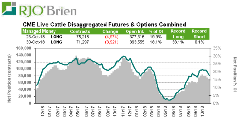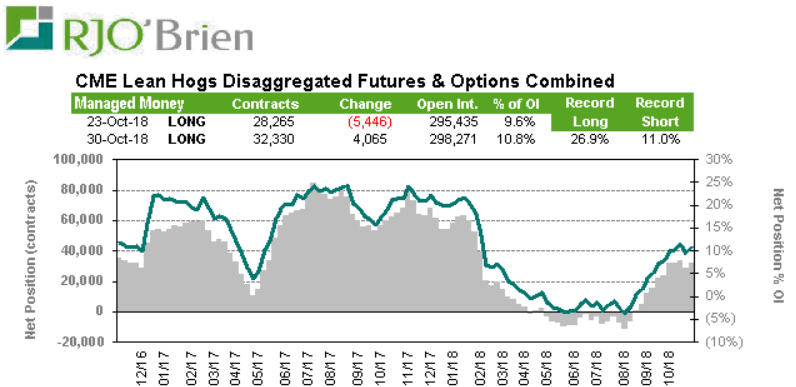 Vendredi, le rapport des positions publié par le CFTC montrait que les spéculateurs étaient acheteurs net de 32 330 contrats en date 30 octobre, une augmentation (achat) de 4 065 contrats sur la semaine.
