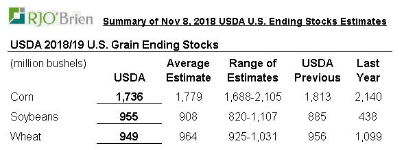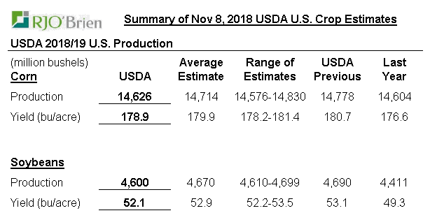 Rendement maïs/soja à la baisse mais réduction de la demande d'export. Forte réduction export feves.