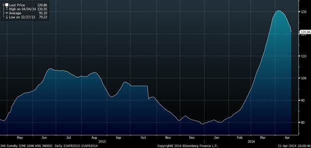 Porc : -2.48 à 122.35 sur juin et -0.70 à 98.60 sur octobre 2014