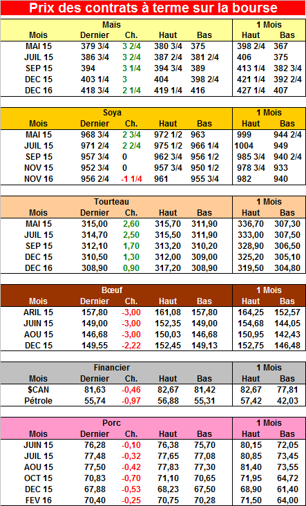 Sur une note positive, les Fonds d’investissement ont une position nette sur le maïs estimée de -75,825 contrats sur la fermeture d’aujourd’hui (voir graphique). Ils sont rarement net vendeur et le marché peut ainsi remonter vite sur des couvertures de positions.