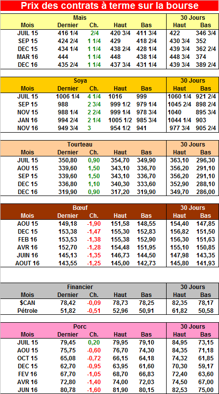 Baisse de 17.6% de la valeur des exportations américaines de porcs durant le mois de mai comparativement au mois de mai 2014. La forte baisse est attribuable par la faiblesse des prix car le volume de porcs exportés a augmenté de 2% durant la même période. Le volume en direction de la Chine pour le mois de mai était en hausse de 25.7% sur un an donc il s’agit d’un deuxième mois de suite dans la bonne direction. Le volume total en 2015 est toujours en baisse de 49% en direction de la Chine comparativement aux cinq premiers mois de 2014.