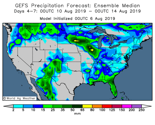 Soya – L’état de la récolte de soya américain 2019 est demeuré inchangé la semaine dernière à 54 % dans les catégories «bon à excellent». 9 États ont indiqué que les conditions du soya s’étaient améliorées la semaine passée, tandis que 7 autres ont mentionné que l’état du soya avait diminué la semaine passée. 2 États sont demeurés inchangés. Cette semaine, il n’y avait pas de tendance distincte pour les améliorations et les déclins. Les 5 États les mieux classés sont : le Tennessee, le Mississippi, le Wisconsin, le Kentucky et le Nebraska. Les 5 États les moins bien classés sont : l’Ohio, l’Indiana, l’Illinois, le Michigan et le Missouri.