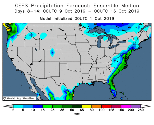 Il n’y a eu que des rapports sporadiques sur la récolte de maïs dans l’ensemble du Corn Belt et probablement pas assez pour porter un jugement éclairé sur les premiers rendements. L’humidité excessive dans le centre et le nord-ouest du Corn Belt n’a probablement pas été bénéfique pour le maïs. Elle ralentit la maturité et entraîne peut-être une pression accrue des maladies et des problèmes de qualité.