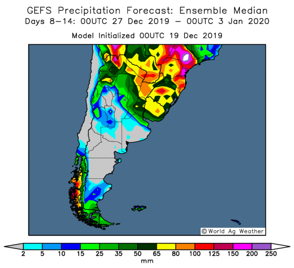 Les conditions en Argentine deviennent beaucoup plus inquiétantes, en particulier dans la moitié sud du pays. Les pluies dans la plupart des régions du sud sont inférieures à la normale depuis plusieurs mois et les prévisions indiquent une poursuite d’un modèle de conditions sèches. Certains agriculteurs des régions arides d'Argentine ont cessé de planter leur soya en raison d'un manque d'humidité du sol et du fait qu'il n'y a pas beaucoup de pluie dans les prévisions. C'est notamment le cas pour le soya à double récolte.