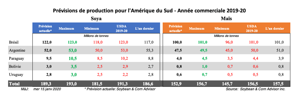 Le maïs en Argentine est évalué à 54,8% «bon à excellent», ce qui est meilleur que la semaine dernière. Le maïs hâtif est à 68% en pollinisation et à 12% au remplissage des grains. Le maïs planté tardivement germe / émerge ou est en développement végétatif. L'humidité du sol pour le maïs est classée à 12% «déficiente» et 49% «optimale», ce qui est une amélioration par rapport à la semaine dernière.