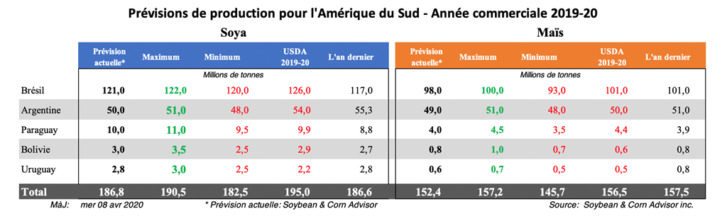 La Bourse des grains de Buenos Aires a abaissé la semaine dernière son estimation du soya argentin 2019/20 de 2,5 millions de tonnes à 49,5 millions de tonnes. Ses responsables ont mentionné des rendements décevants alors que la récolte n’a progressé que de 8,1%. Ils ont estimé que le rendement national du soya pourrait être aussi bas que 2 900 kg / ha (42,9 boisseaux / acre) contre 3 350 kg / ha l'an dernier (49,5 boisseaux / acre) et 2 980 kg / ha (44,1 boisseaux / acre) pour la moyenne quinquennale.