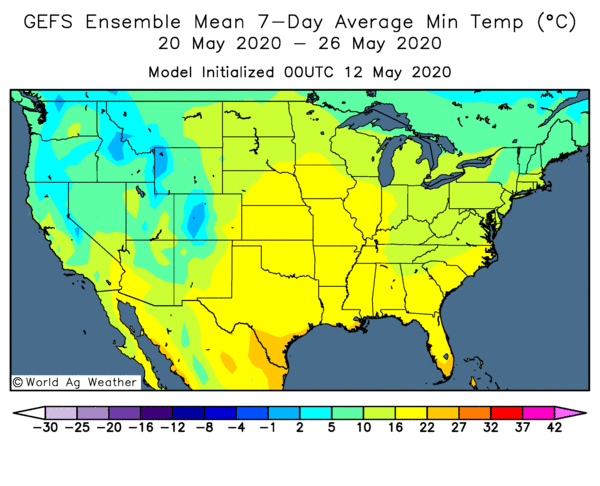 La grande nouvelle pour la météo au cours du week-end dernier a été le gel survenu dans de nombreux États. Il s’est étalé du Dakota du Nord au sud-est l'Ohio et au-delà. Il y a probablement eu quelques dégâts mineurs causés aux premières cultures émergentes, mais il faudra quelques jours pour mieux évaluer la situation.