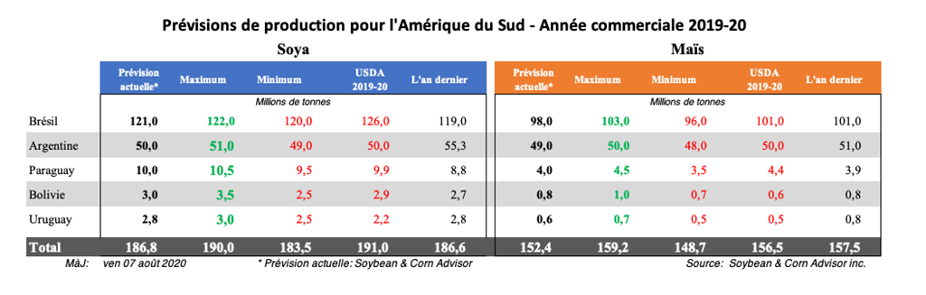 Les agriculteurs brésiliens prévoient une autre saison de croissance rentable en 2020/21 grâce à une devise plus faible qui soutient les exportations et à un secteur de l'élevage domestique fort qui soutient la demande interne de maïs et de tourteau de soya. Les approvisionnements actuels en maïs et en soya sont très serrés au Brésil et, en fait, le Brésil pourrait avoir besoin d'importer de petites quantités de maïs et de soya pour se rendre à la prochaine saison de récolte.