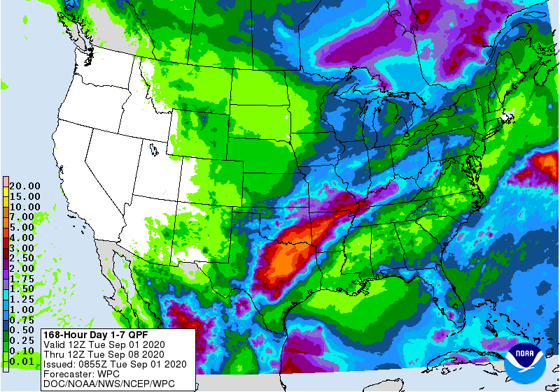 Le temps chaud et sec de la semaine dernière a fait des ravages sur le maïs, surtout dans les régions où il y avait déjà un stress hydrique important. Les seules améliorations ont été trouvées dans au milieu du sud où ils ont reçu beaucoup d'averses issues de l'ouragan Laura. Il y a des rapports selon lesquels le maïs dans les zones sèches a poussé très rapidement pour venir à maturité.