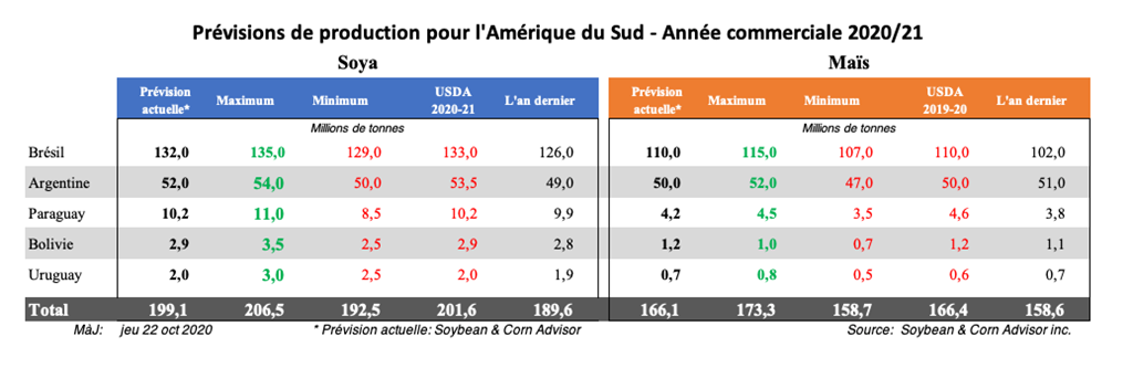 Les prix du maïs à la bourse brésilienne B3 continuent de grimper jusqu'à 83,00 réals le sac (environ 6,98 $ US le boisseau), ce qui s'approche de la parité avec les importations potentielles de maïs en provenance des États-Unis. En fait, le prix à terme du maïs à la bourse B3 a dépassé 80,00 réals par sac pour novembre 2020, janvier 2021 et mars 2021 (environ 6,75 $ US le boisseau).