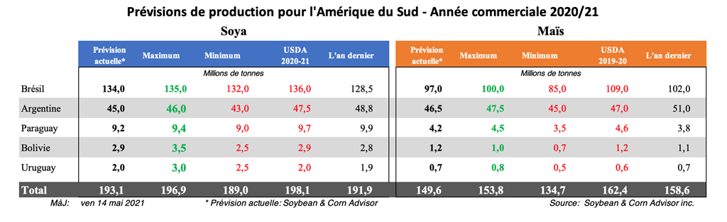 Dans le rapport WASDE de mai, l'USDA a abaissé son estimation de la production brésilienne de maïs 2020/21 de 7 millions de tonnes à 102,0 millions. Les estimations de la Conab et de l'USDA sont plus élevées que de nombreuses estimations privées du secteur.