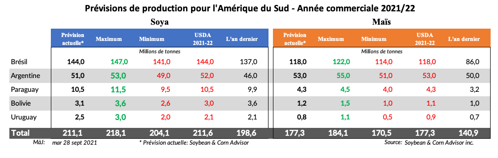 L'humidité du sol est encore trop sèche pour que la plupart des agriculteurs brésiliens commencent à planter leur soya 2021/22, mais la plantation de soya au Brésil devrait mieux démarrer que l'année dernière lorsque le temps sec a retardé la plantation d'un mois ou plus sur de vastes étendues du Brésil. Si la récolte de soya brésilien est semée à temps, ce serait de bon augure pour le maïs safrinha et le coton safrinha qui seraient semés en janvier et février prochains.