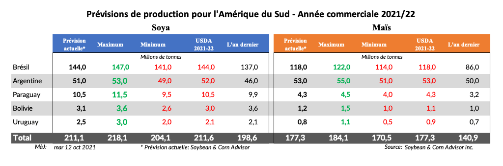 Les prévisions annoncent quelques averses éparses cette semaine, mais dans l'ensemble, les précipitations devraient rester inférieures à la normale au cours des 10 à 15 prochains jours, ce qui pourrait entraîner une baisse de l'humidité du sol et stresser la germination du maïs et du soya.