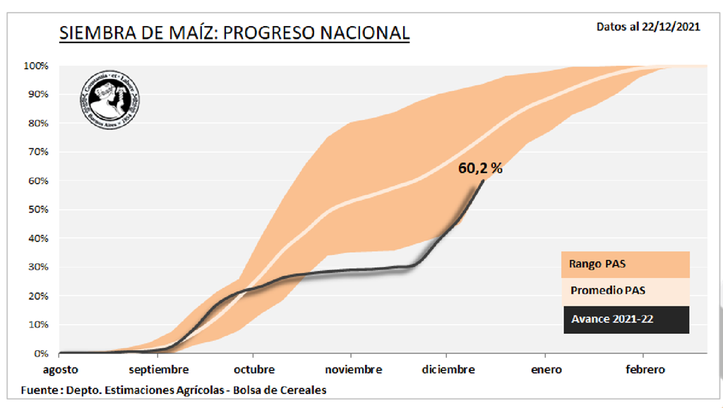 L'estimation du maïs d’Argentine 2021/22 a été abaissée de 1,0 million de tonnes à 52,0 millions et j'ai un biais neutre à inférieur à l'avenir.