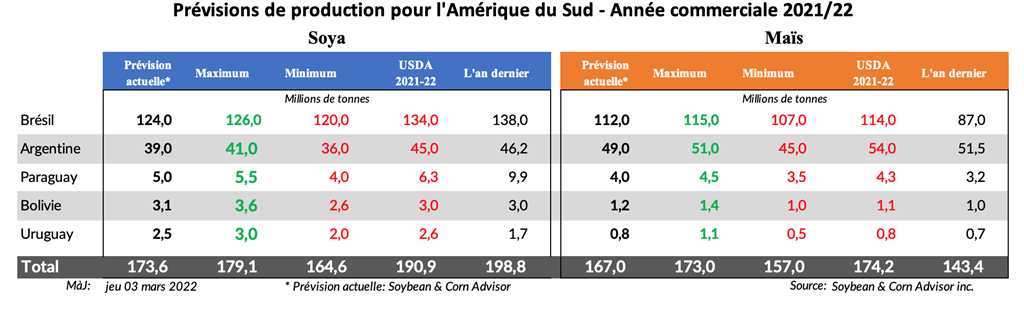 Mes estimations actuelles pour les cultures de maïs brésilien sont de 22 millions de tonnes pour la première récolte, 89 millions pour la récolte de maïs safrinha et 1,7 million pour la troisième récolte.